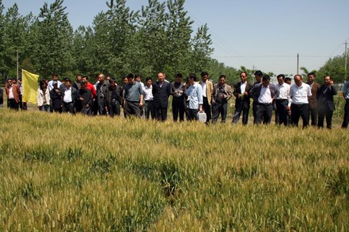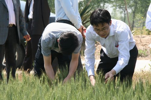 届时,来自各地的宾客一行80余人来到上农4队、上农5队观看了申河麦1号、扬农啤5号的田间生长情况,申河麦1号的抗赤霉病、扬农啤5号的高产特性得到了大家的一致肯定。