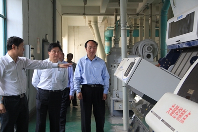 光明米业有限责任公司党委书记、董事长项竞文,光明槐祥董事长张斌、总经理郭少祥等党政班子成员陪同调研。(何丽莉)