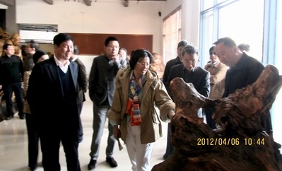 (市委宣传部副部长宗明在听取海湾国家森林公园根雕馆情况介绍)