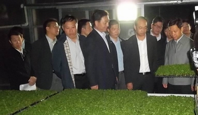 10月17日,上海市副市长姜平市府有关委、办、局、市郊各区县农业分管领导视察上海种业集团东台粒粒丰工厂化育苗中心。
