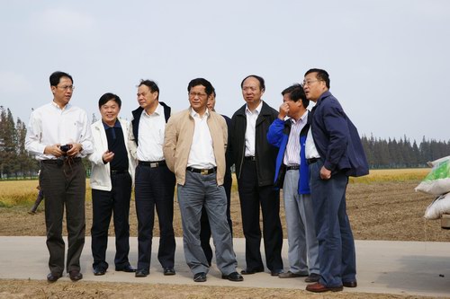 (上海市委农办主任孙雷在集团总裁助理张汉强陪同下视察跃进三秋现?。?/DIV>