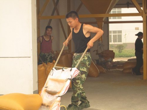 团结就是力量,团结就是胜利。在“三夏”一线武警官兵们发挥出了军人不怕苦、不怕累的革命精神?!澳睦镒钚枰⒛睦镒罾?、哪里最艰苦,就出现在哪里”,在各条烘干线、仓储、粮食烘干出口的一线都可以看到他们紧张而忙碌身影,他们推车的推车、扛包的扛包、干的热火朝天。相信在武警支队的全力支援和配合下,我们一定会加快完成“三夏”工作的步伐。(张雷)