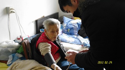 2010年2月24日上午,青年志愿者一行十人在团支部书记的带领下来到了郝剑云老奶奶家。郝奶奶今年96岁,由于年事已高,生活行动有所不便。为了让郝奶奶能够安心度过晚年生活,志愿者和郝奶奶促膝交谈,询问了郝奶奶的身体状况,并用电子血压器为其测量血压,当看到郝奶奶血压偏高时,志愿者叮嘱郝奶奶按时服用降压药。志愿者为郝奶奶洗脸洗头、打扫屋子、陪她聊天。对于我们的关爱和帮助,郝奶奶非常的开心,并表示感谢。在临走之际,志愿者叮嘱老人有什么困难就直接和我们志愿者联系,志愿者一定尽力给予帮助。之后志愿者还走访李星林、李凤岗、朱招娣等老人家庭,为他们送去了关爱和志愿服务。