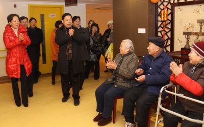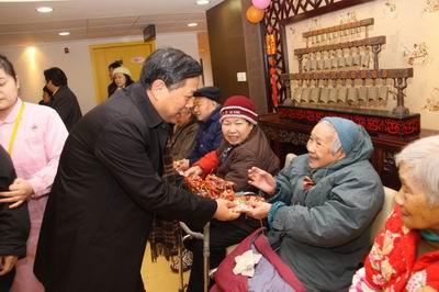 益民集团杨文倡等领导除夕慰问杨浦区福利院老人