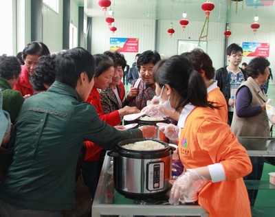 (游客争相品尝“自然之子”新米饭)