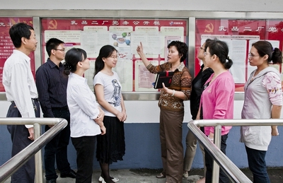 ??? 乳品二厂党支部作为光明乳业股份有限公司党务公开试点支部,以打造阳光工厂为目标积极探索创新形式,切实保障、落实党员的知情权,要求党务公开能够吸引党员群众的眼球,重在畅通公开渠道,建立“四会一栏”公开模式?!八幕帷笔侵傅吃被嵋椤⒊Р炕嵋?、员工班前班后会、党建信息发布会,“一栏”是指设立在职工食堂前的6块党务公开栏。贵在公开内容要围绕党员群众关注的热点问题。首先把党组织和党员的“家底”交给群众,在党务公开栏公示党政领导班子成员职务和分工明细、支部工作计划、党员创先争优承诺书、人事变动等信息,在每月的党建信息发布会上介绍厂党务公开工作进展情况以及近期将开展的党务工作,及时让员工真正了解和参与企业的党建工作、管理工作,来提升企业的党建工作水平,保持党的先进性。
