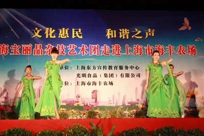 为进一步丰富海丰职工居民的业余文化生活,在上海市委宣传部、东方宣教中心和光明集团党政的关心关怀下,日前,上海市宝丽晶杂技艺术团来到海丰农场进行“送戏下乡”慰问演出。