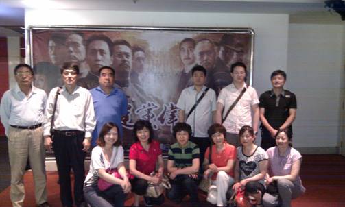 (五四有限公司“长征医药”全体党员在《建党伟业》电影宣传画前合影留念)