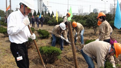 (星火开发区内的企业员工参加植树活动)