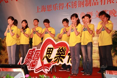 这是一份见证历史的纪念,这是一曲思乐得的赞歌。晚7时,随着喧天锣鼓的敲响,“风雨同舟二十年、而今迈步从头越——上海思乐得不锈钢制品有限公司成立20周年庆典晚会”的大幕徐徐拉开。