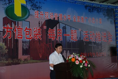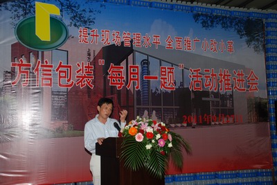 在方信公司总经理范德健主持的推进会上,兼任一分厂厂长的副总经理张建国交流了如何努力消除浪费大、损耗大、毛利率小的“两大一小”生产管理弊端,不断提高经营效益的工作体会,其中三名一线职工讲述了参与技改生动事例;兼任二分厂厂长的工会主席祝宝官以“现场管理与班组建设相结合、不断提升企业内部管理水平”为主题,通过制瓶工段的工段长吴瑞光讲述的“延伸冷却架”小技改的故事,阐明了班组建设关键是组织实施和注重实效的重要性;而方信公司党支部书记陈相义着重谈了在创建发展型党支部过程中,坚持将党建工作融入“拓市场、抓管理、增绩效、谋发展”的做法和体会,认为确立以人为本理念,不但要信而且要做,要努力去实践,才能最大限度地调动和发挥职工群众的积极性和创造性,才能在开展小改小革取得成效。