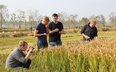 (布朗农学院学生查看农场稻子的生长情况)