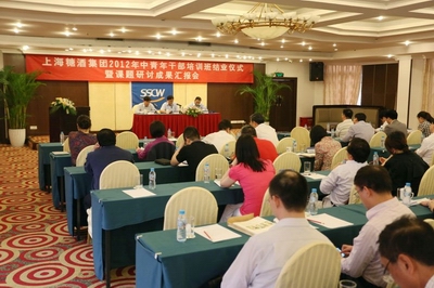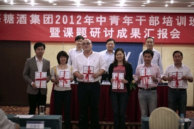 ?????? 作为糖酒集团“管理与提升”工作的重要项目之一,为期两个多月的糖酒中青年干部培训班即将划上圆满的句号,为进一步检验学员培训成效,展示学员才华,近日,糖酒集团举行2012年中青班结业典礼暨中青班课题研讨汇报会,糖酒集团党委书记李国忠作培训总结并提工作要求,党委副书记、纪委书记徐静和,副总裁甘春开对学员课题报告进行了点评,各子公司党组织书记、党办、人力资源部负责人及培训班学员出席会议。