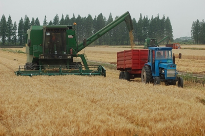 光明米业跃进农业公司大麦收割现场
