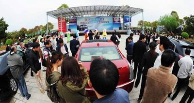 车迷们在现场欣赏凯迪拉克豪华名车