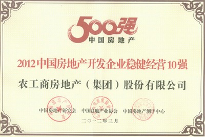 (农房集团2012中国房地产开发企业稳健经营10强证书)