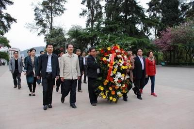 (“书记、经营者沙龙”成员向“遵义红军烈士纪念碑”敬献花篮)
