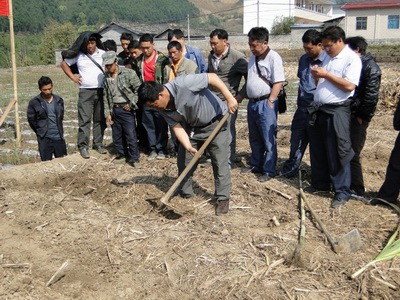 现场会着重讲解了甘蔗砍收和宿根管理技术,特别就锄头的尽寸、穿斗角度,铲蔸力度和深度的把握,补苗、培土、施肥、覆膜的要领进行了认真细致的阐述,重点突出了“即砍即管”的时间性要求,倡导蔗农在甘蔗砍收后10天内清理蔗园,采用平铲蔸与地膜覆盖相结合进行宿根蔗管理,并对旱地蔗管理方法进行了实地培训。同时要求与会人员认真学习、掌握科学的管理方法,广泛宣传、普及应用。